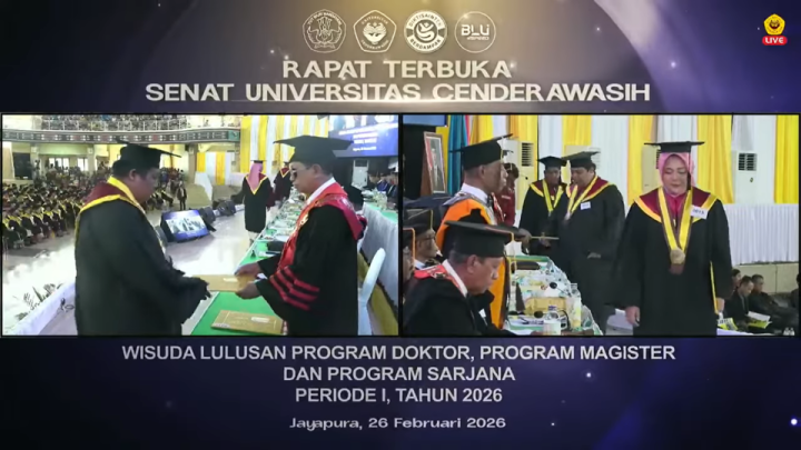 Jayapura, 26 Februari 2026 – Universitas Cenderawasih (Uncen) menyelenggarakan Rapat Terbuka Senat dalam rangka Wisuda 508 lulusan dari jenjang doktor, magister, dan sarjana untuk Periode I Tahun 2026. Kegiatan ini menjadi penanda capaian akademik para wisudawan sekaligus penguatan peran Uncen sebagai perguruan tinggi yang terus mendorong peningkatan kualitas pendidikan, relevansi kurikulum, serta kontribusi nyata bagi…